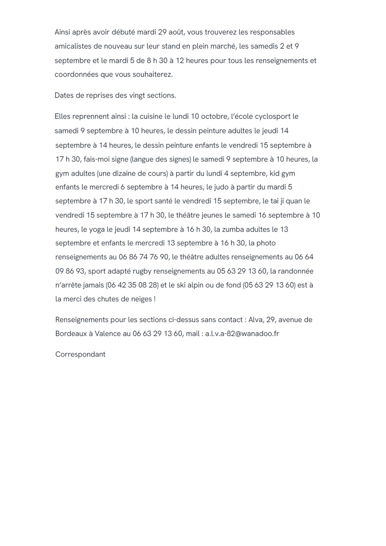 ALVA (toutes sections)