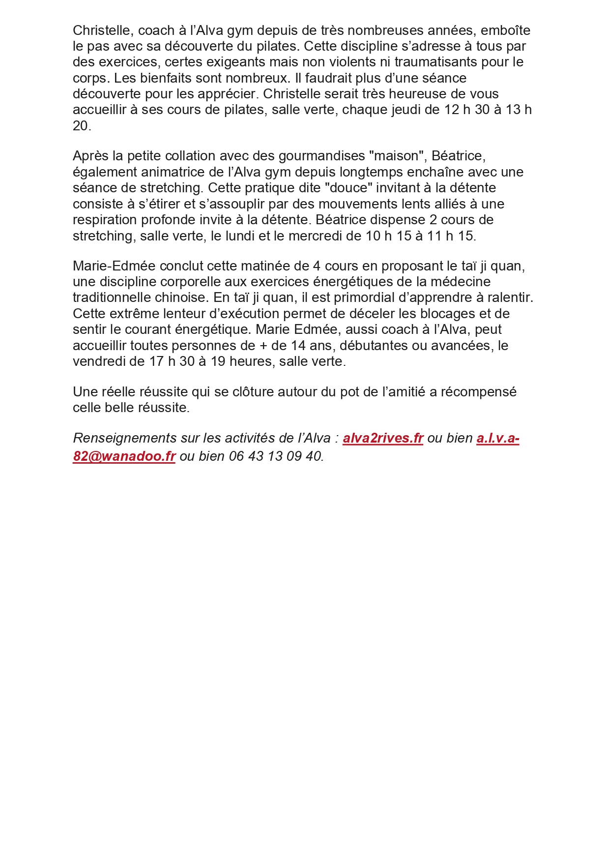 ALVA Gym adultes