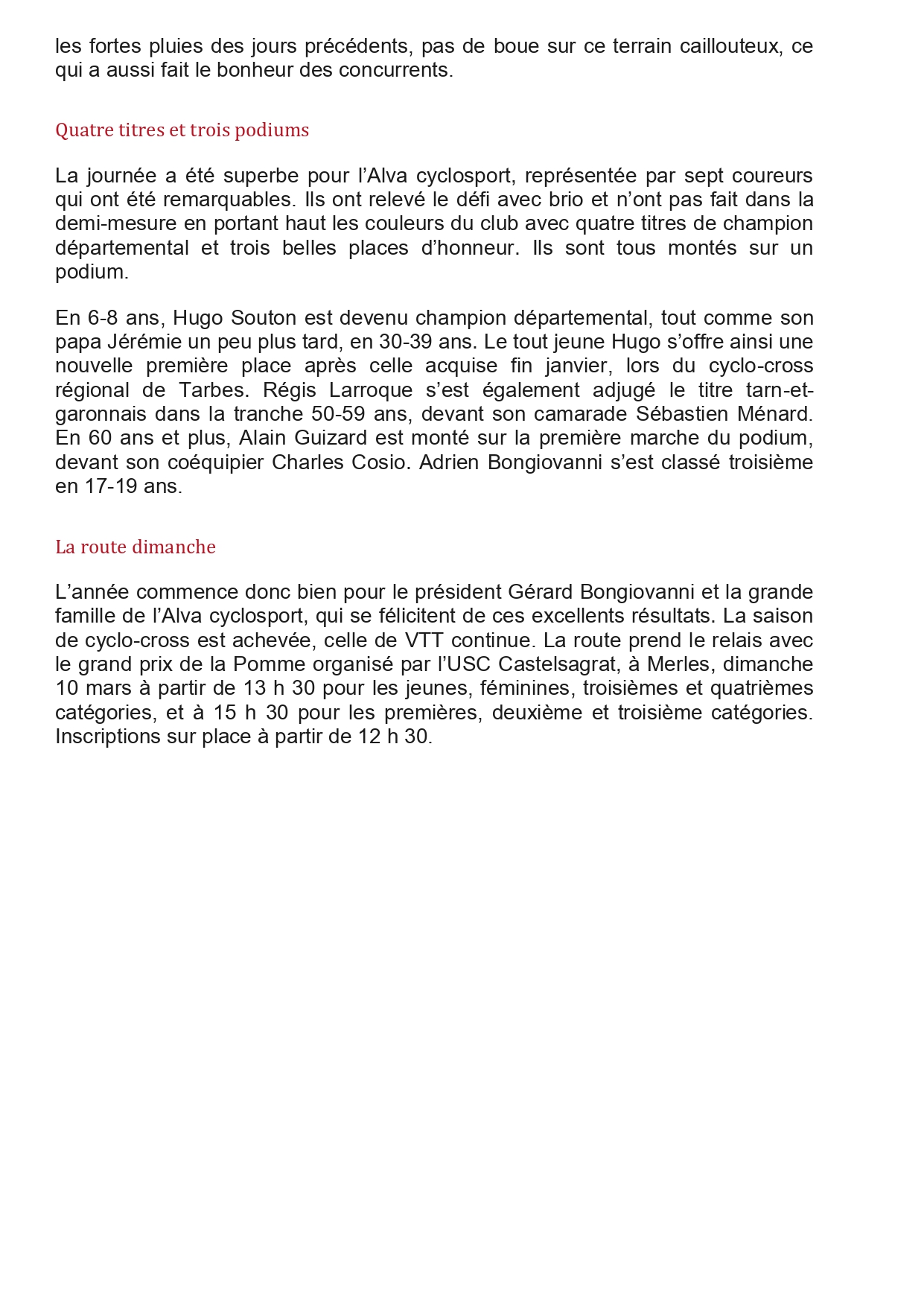 ALVA Rando pédestre et ALVA Cyclosport - VTT