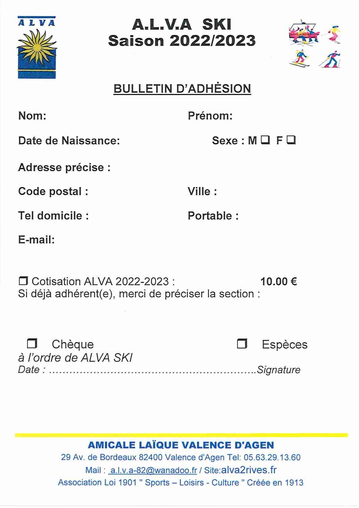 Bulletin adhésion ski
